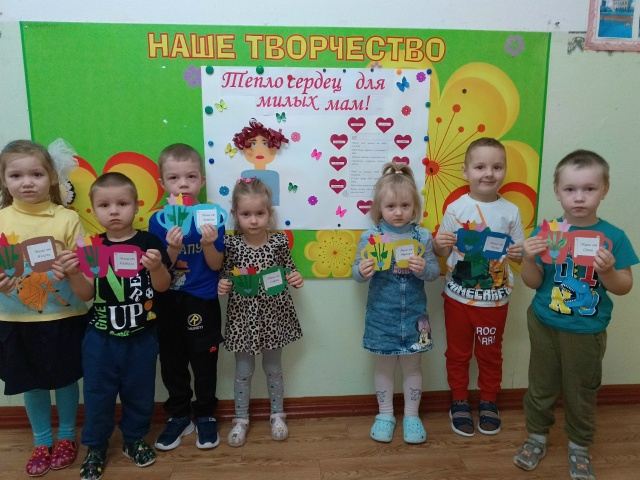 В преддверии праздника, посвящённого Дню матери, воспитанники детского сада с любовью изготовили своими руками для своих мамочек открытки и плакаты с поздравлениями "Тепло сердец для милых мам!"